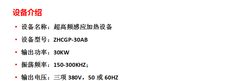 · 设备名称:超高频感应加热设备